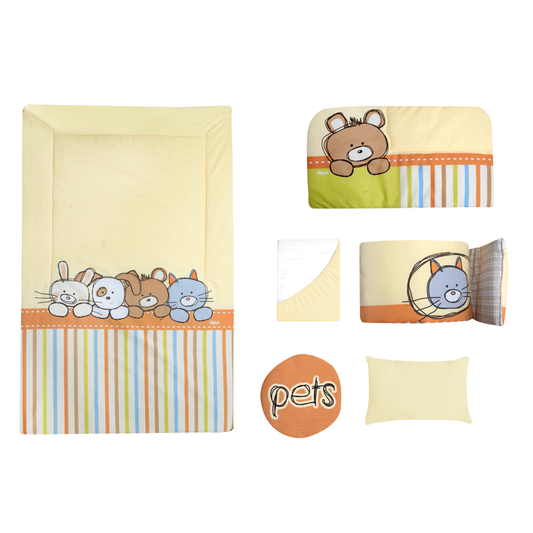 Juego de edredón 6 piezas para cuna Mascotitas