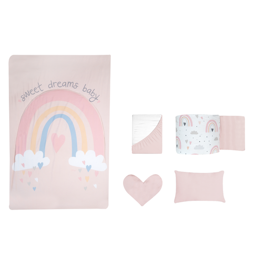 Juego de edredón doble vista 5 piezas para cuna Arcoíris