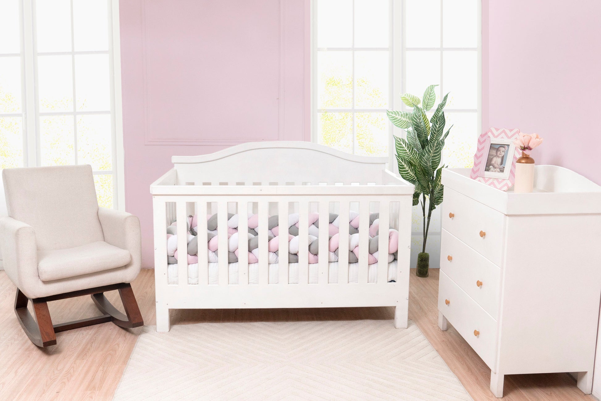 Protector para cuna trenzado Rosa